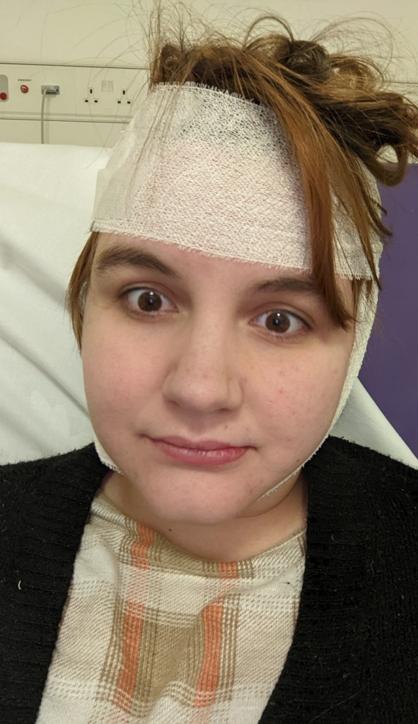 I’m now home feeling worn down, emotional, bruised and tired. I’ve got to remain bandaged for a while as it settles and start being more conscious of my jaw movements. Not the sort of headwear I’d been planning on wearing to church tomorrow but heyho. Got to keep laughing.